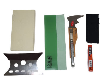 커터칼, 플라스틱 헤라, 드라이기, 프라이머 붓, 탈지제